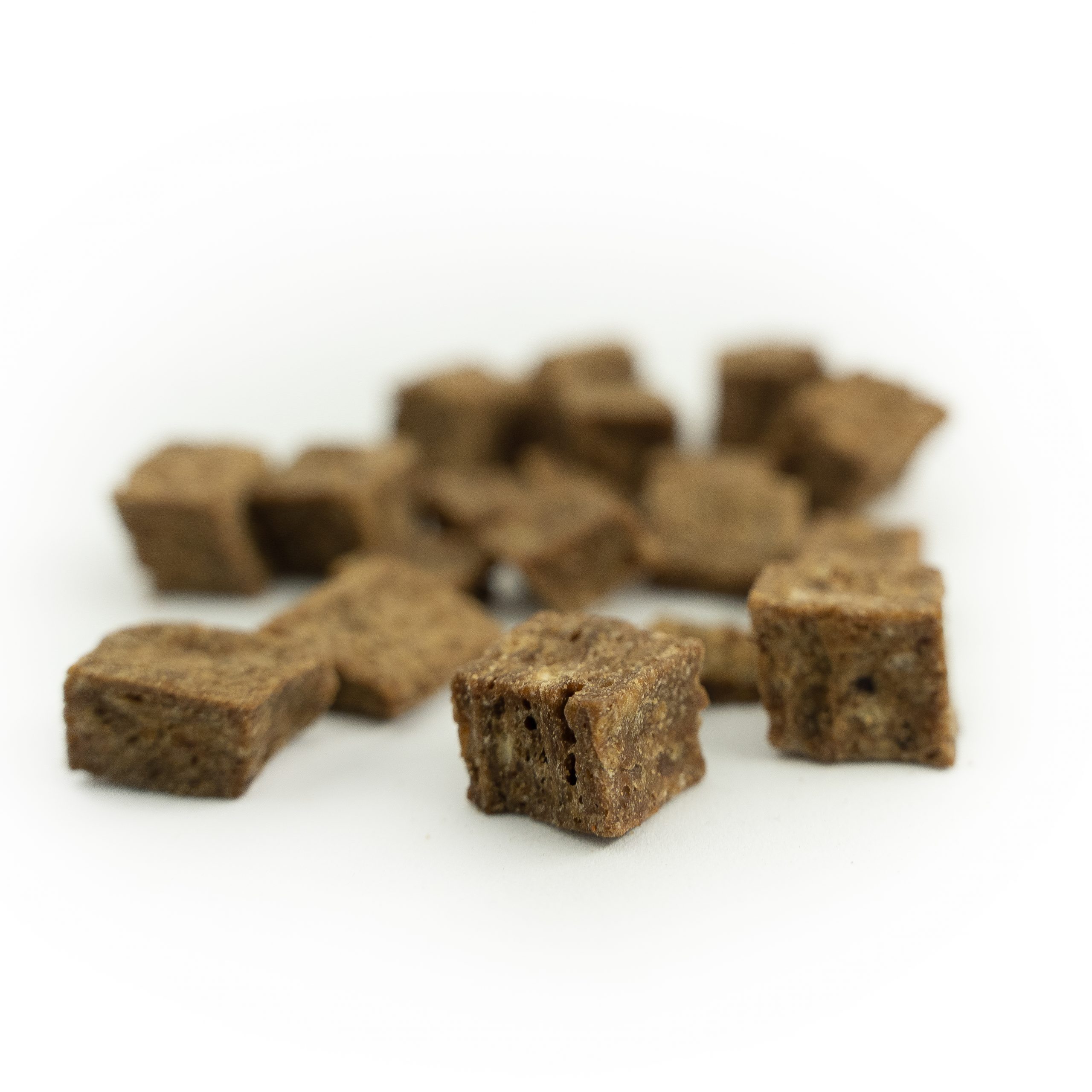 Kleine Trainingssnacks für Hunde. Mit den Trainingssnacks Pferd können auch Allergiker Hunde bedenkenlos geniessen. pur und rein, ohne Zusätze.